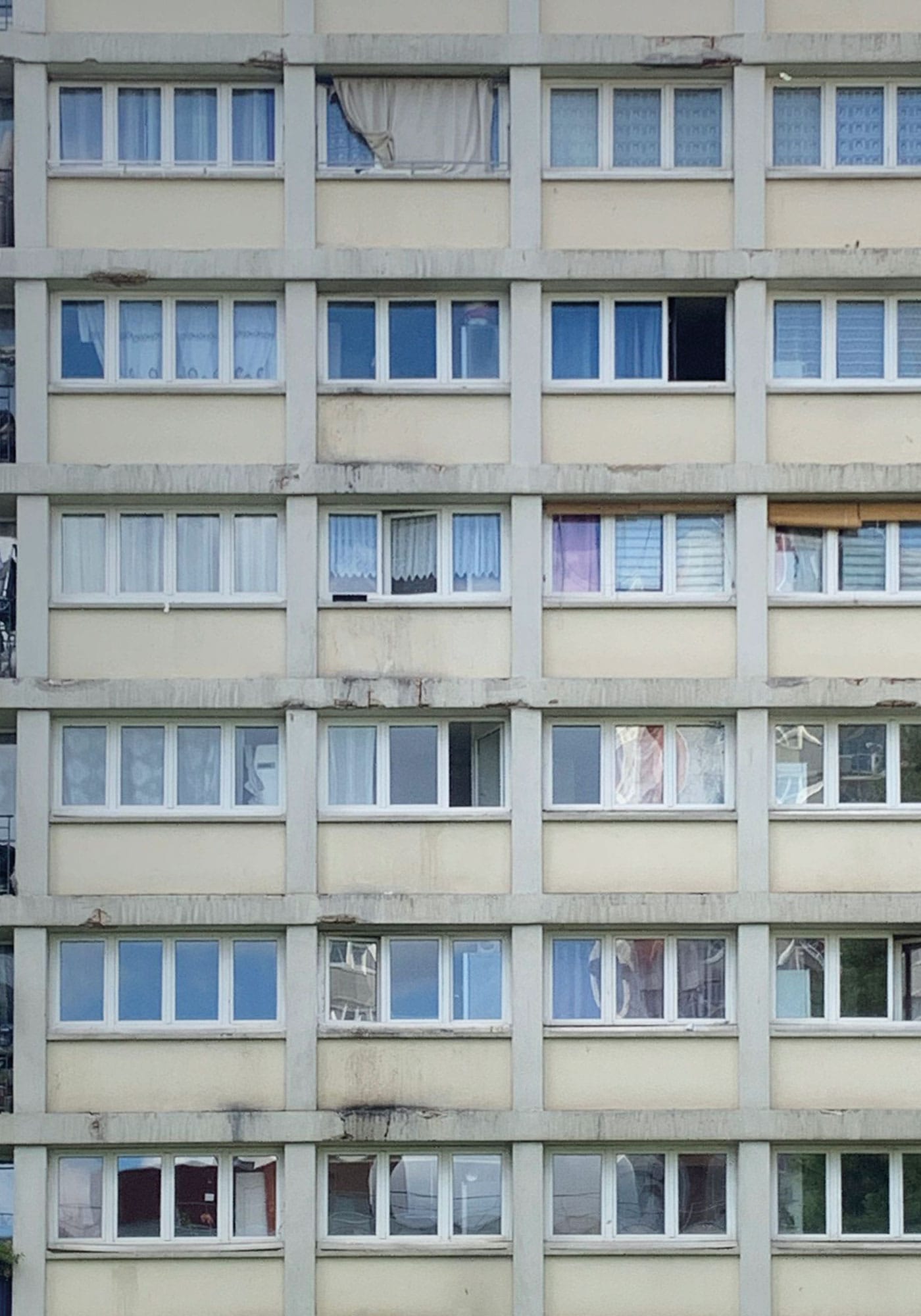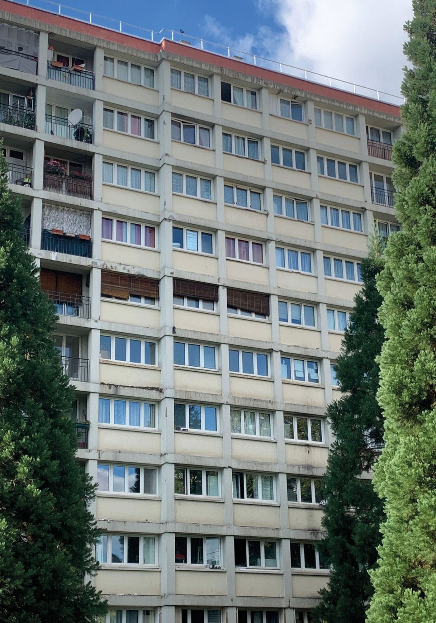 La trame rigoureuse en béton constitue le support d’une requalification architecturale des façades par l’ajout d’une seconde peau.